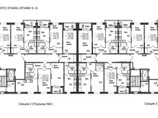 Двухкомнатная квартира 60,39 кв. м. на пятом этаже с предчистовой отделкой.