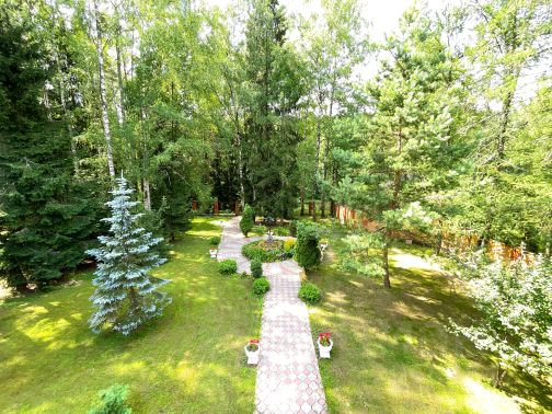 на участке вымощены гранитные дорожки есть калитка и распашные ворота. Большая теплица. Хоз блок.