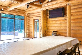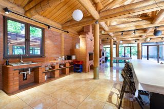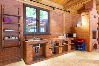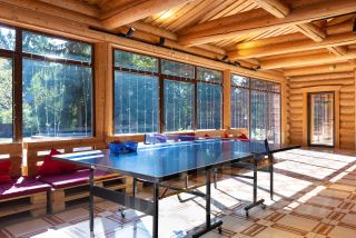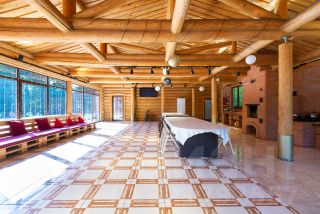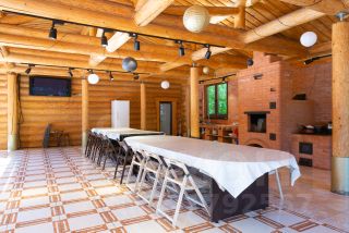 - просторный холл 130 м2 с большим обеденным столом, вместимость до 30 гостей