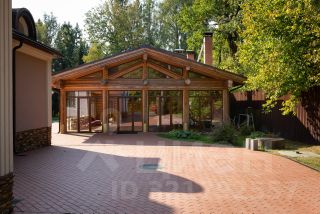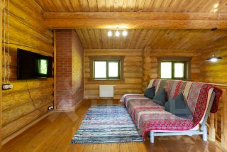 Двухэтажный коттедж из бруса площадью 430 м2 расположен на участке 28 соток. Находится в 53 км от МКАД по Ярославскому шоссе, Хотьково.