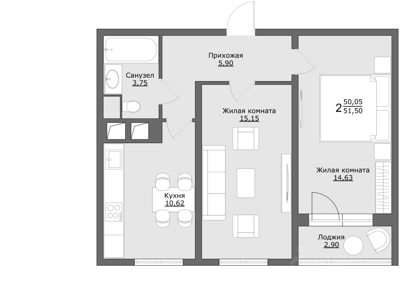 51,5 м²
