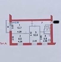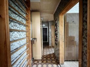В квартире две смежные комнаты (13,7 и 9,9 кв. м) и одна изолированная (10 кв. м), кухня (6м2), застекленный балкон, санузел раздельный. Потолки высотой 2,5 м. Квартира сухая и теплая. Требуется ремонт (состояние на фото).