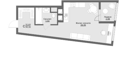 Продается квартира-студия площадью 34,32 кв. м. на девятом этаже в строящемся доме в новом жилом комплексе Клевер в Хотьково. Срок сдачи: I кв. 2026 г.
