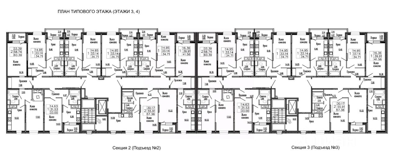 Продается двухкомнатная квартира площадью 57,38 кв. м. на третьем этаже в строящемся доме в новом жилом комплексе Клевер в Хотьково. Срок сдачи: I кв. 2026 г.