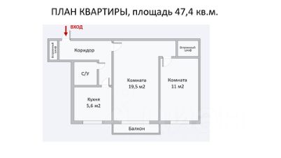 • Общая площадь: 47,4 м²