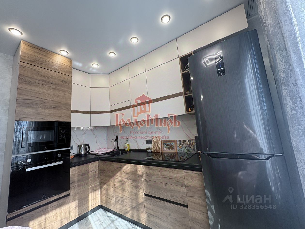 - Установлена дорогая кухня с доводчиками шкафчиков со встроенной техникой: микроволновая печь, духовой шкаф, посудомоечная машина, вытяжная система, электрическая панель.