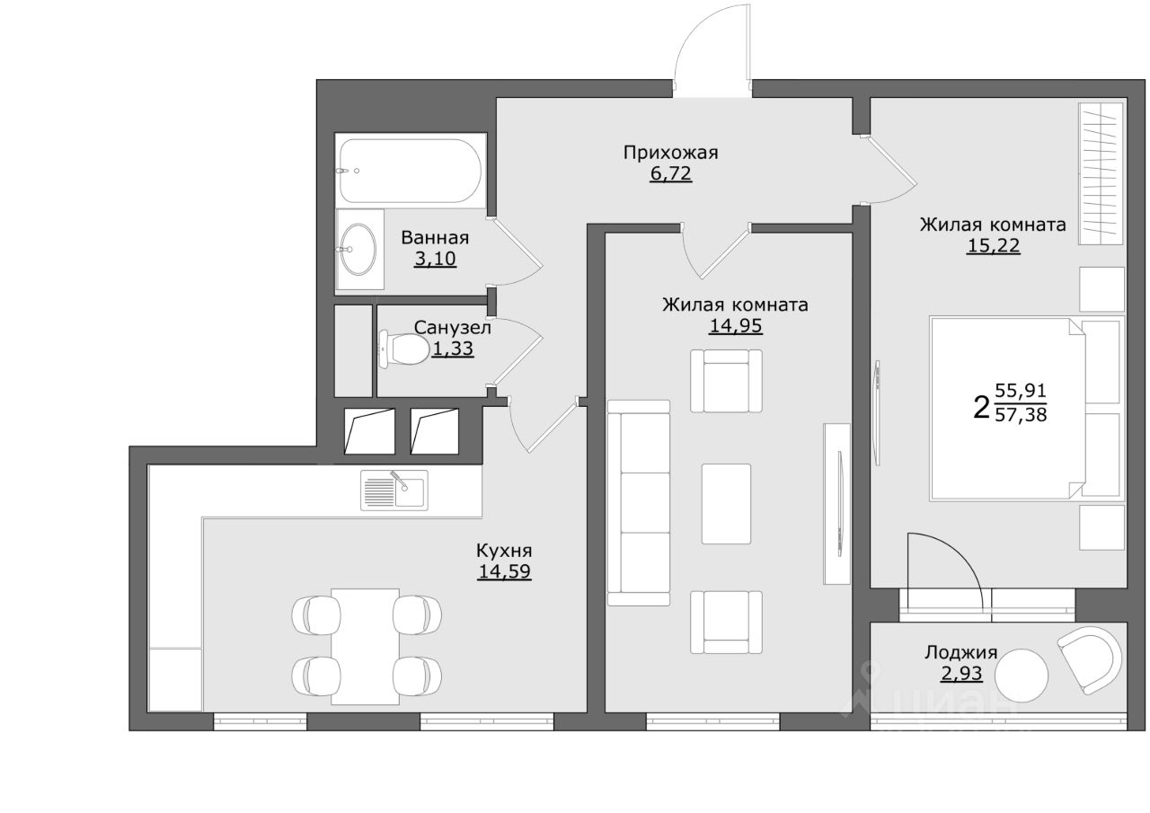 Продается Евротрешка с отделкой White Box площадью 57,38 кв. м. на пятом этаже в новом жилом комплексе Клевер в Абрамцево. Срок сдачи: II кв. 2026.