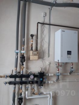 В доме произведен полный монтаж отопительной системы: 14 радиаторов Керми, газовый котел Baxi, наносная группа через распределительную стрелку.
