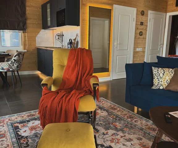 Приглашает отдохнуть на природе в экологически чистом, уединенном месте среди хвойного леса Эко шале A-Frame. Находимся в 45 минутах езды от МКАД по Ярославскому шоссе. Дом очень теплый. Работают все службы доставки. Дополнительно оплачивается банный чан 6000рублей. Достопримечательности --Парк Скитские пруды --Усадьба Абрамцево --Парк Приключений(Верёвочный парк) -- Горнолыжный центр Лоза(15 минут езды) --Пансионат Восход( трассы тюбинги, открытый каток) --Дом енота --Этнопарк Кочевников --Аренда квадроциклов и снегоходов Дом построен в 2022 году, участок 12 соток. На участке ели. В доме все абсолютно новое. Начало сдачи октябрь 2022года У нас не база отдыха, вы находитесь на собственной территории без посторонних лиц, других гостей и хозяев на территории. Наша концепция удаленного доступа в дом, приехать и заселиться можно самостоятельно в любое удобное время Площадь 65кв. м. большой а фрейм. - 1 этаж спальня, санузел, кухня- гостиная 24кв.м. - 2 этаж лофт 12кв.м с двухспальной кроватью - терраса 14кв.м с шезлонгами - костровая зона с мангалом, костровой чашей и шезлонгами Диван в гостиной раскладывается в полноценное спальное место. Постельное белье включено Гостям предоставляем теплые пледы специально для улицы!!! На территории предусмотрено освещение. Весь первый этаж оснащён системой теплого пола в том числе и санузел, поэтому даже в холодное время года будет комфортно бегать босиком и не бояться сидеть на полу. Кухня оборудована всем необходимым: посуда (кастрюли, сковорода, чашки, тарелки, бокалы, рюмки, заварной чайник для чая, ложки, вилки, ножи, разделочные доски, салатники), холодильник с морозильной камерой, плита, кофеварка, СВЧ, электрический чайник. ЧАЙ, КОФЕ, САХАР, СОЛЬ, МАСЛО РАСТИТЕЛЬНОЕ, ПРИПРАВЫ Телевизор большой диагонали со смарт ТВ, пульт с голосовым управлением, Amediateka, беспроводной джойстик для игр. Высокоскоростной интернет, Wi-Fi Парковка на 2-3 автомобиля. Костровая зона (мангал, шампура, решетка для гриля) Настольные игры.